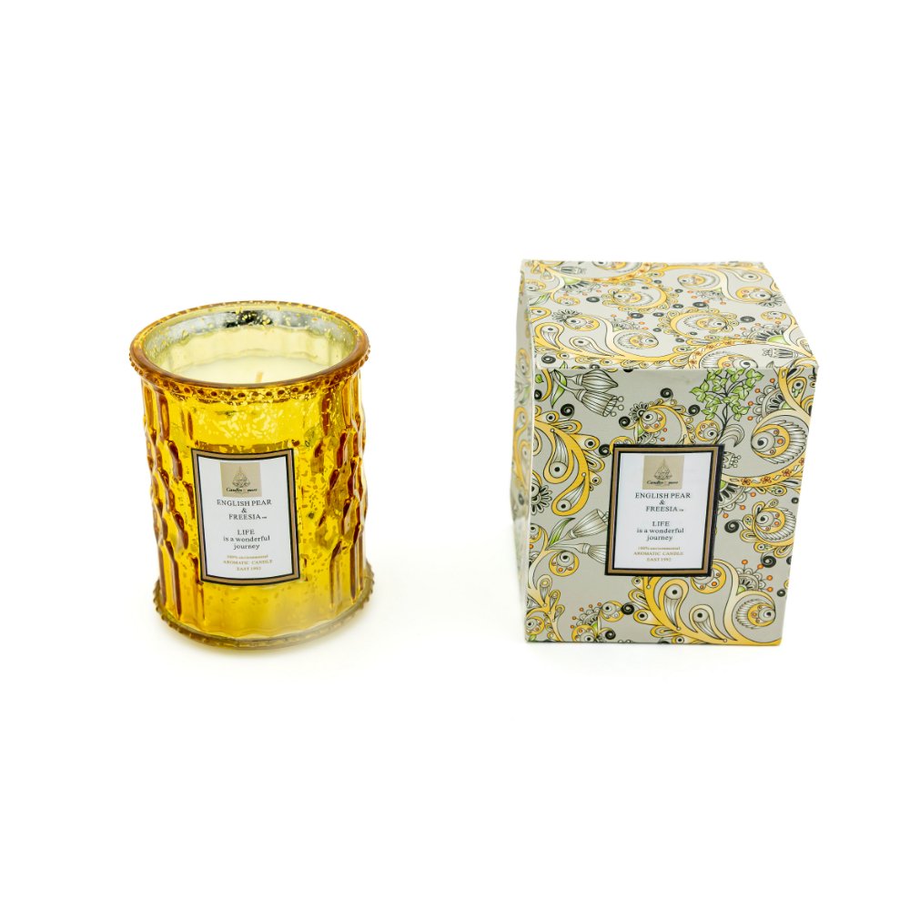 Αρωματικό Κερί σε Ανάγλυφο Γυάλινο Βάζο “Shine” Στρογγυλό Pear + Freesia 180g