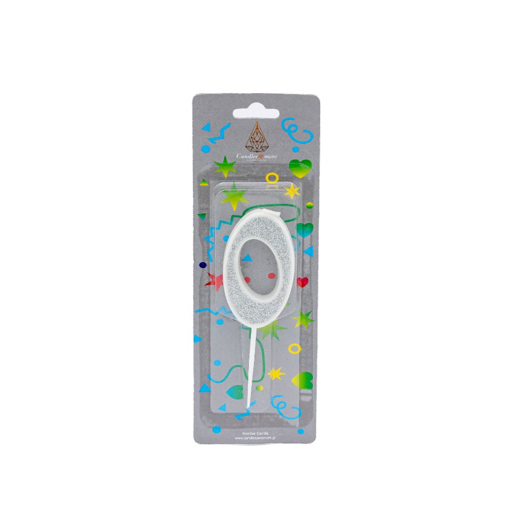 Κερί Γενεθλίων Glitter Αριθμός Νο 0 Silver