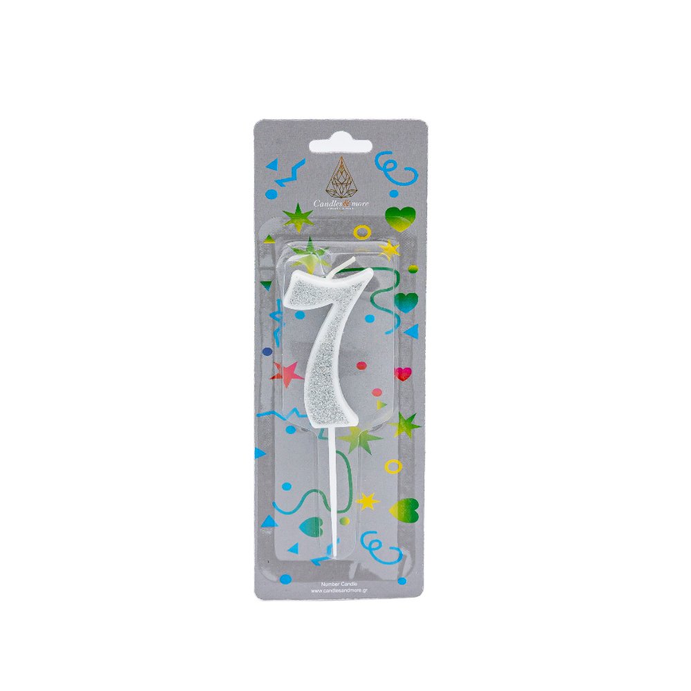 Κερί Γενεθλίων Glitter Αριθμός Νο 7 Silver