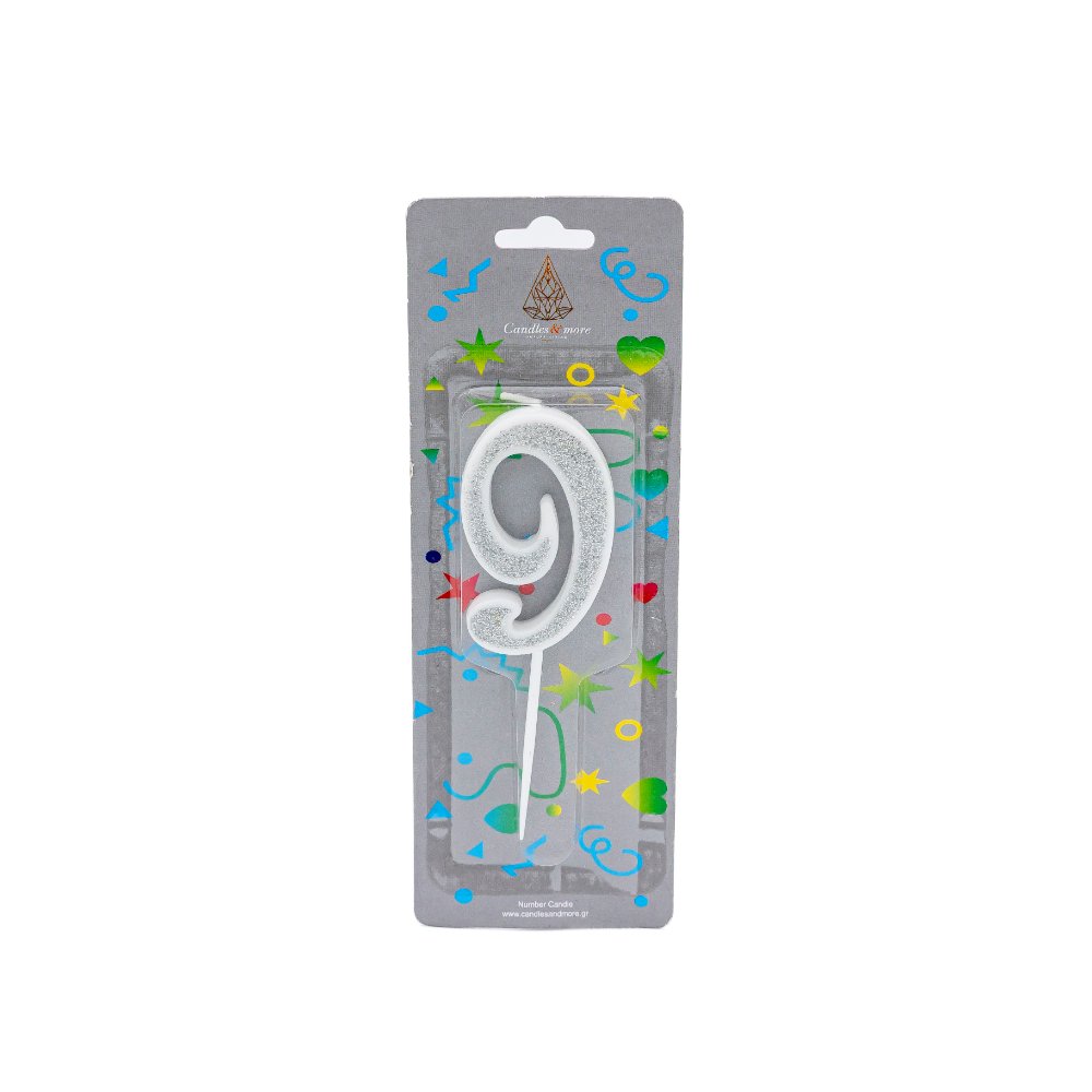 Κερί Γενεθλίων Glitter Αριθμός Νο 9 Silver